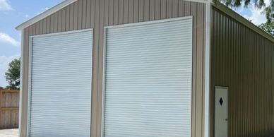 - Equipped with two roll-up doors, a walk-in door with a diamond window, and TWO 24”x36” windows.